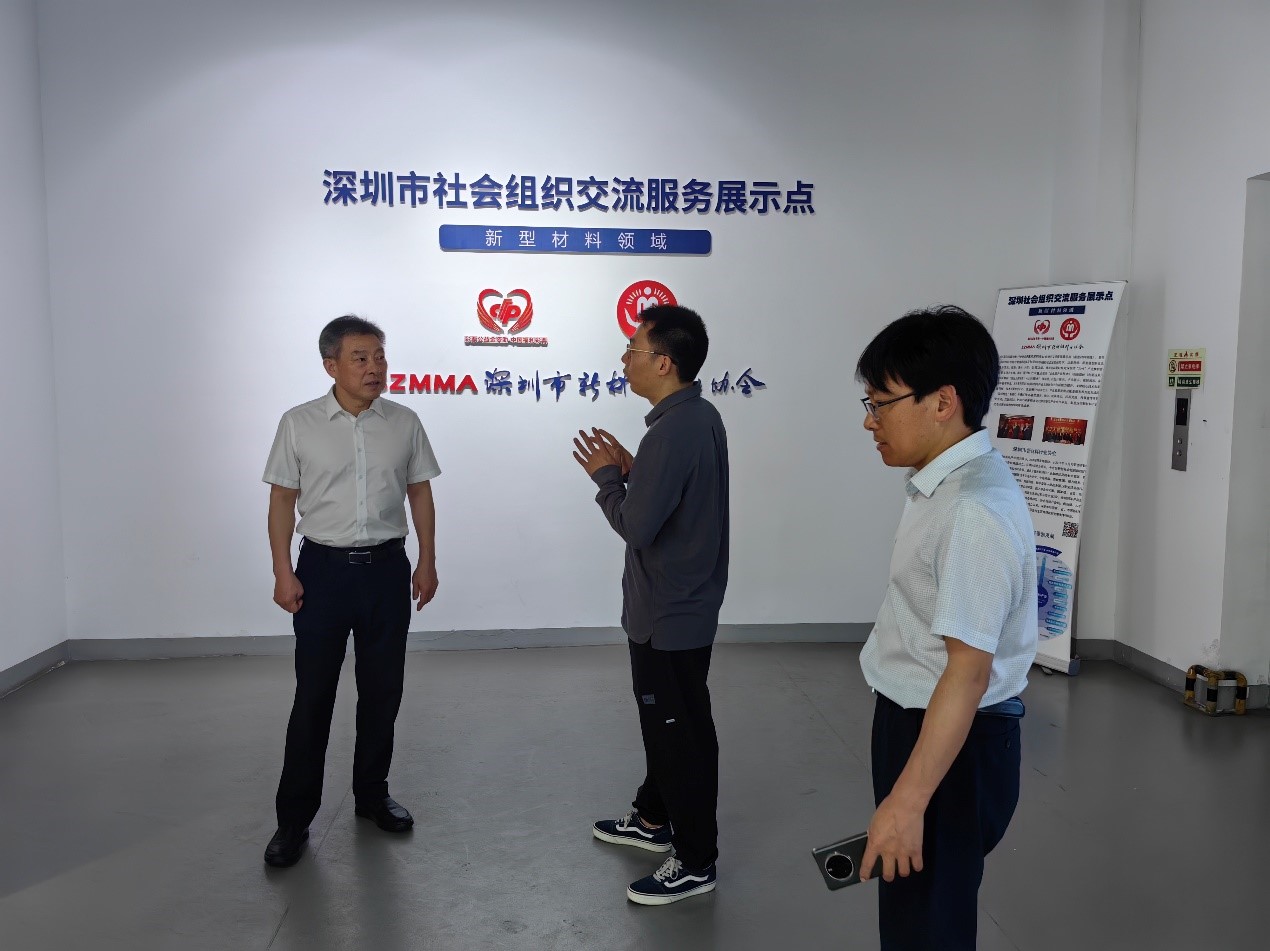 5月15日下午,广东省沥青混凝土供应链协会创始会长、深圳市海川实业董事长何唯平一行到访深圳市社会组织交流展示点(新型材料领域),深圳市新材料行业协会会长陈寿接待并陪同参观了展示点。