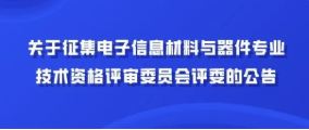 为完善深圳市专业技术资格评审委员会评审委员库,加强职称评审管理,根据《广东省高、中级专业技术资格评审委员会评审委员库管理暂行办法》(粤人发〔2003〕101 号)有关规定,现就公开征集电子信息材料与器件专业评委的有关事项公告如下: