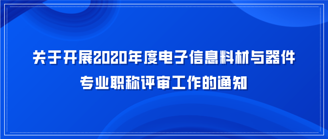 根据广东省人力资源和社会保障厅《关于做好2020年度职称评审工作的通知》(粤人社发〔2020〕142号)和深圳市人力资源和社会保障局《关于开展2020年度职称评审工作的通知》(深人社发〔2020〕61号)精神,现将2020年度电子信息材料与器件专业职称评审工作有关事项通知如下: