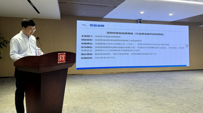 会上,中国质量认证中心深圳分中心的专家谭振斌就先进电池材料和储能行业质量提升服务做了详细介绍,剖析了行业质量提升的关键路径与服务创新点。