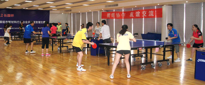 精彩激烈,欢声笑语,4月14日下午,由深圳市新材料行业协会主办,长园集团独家冠名的首届2012“长园杯”乒乓球友谊比赛激情开拍,乒乓球世界冠军陈新华参加了开幕式并为比赛开球。当天下午,高新区文体中心乒乓球馆内热闹非凡。由北大深圳研究院、深圳惠程、德邦界面、石金精密、深圳先进院、融创创投、长园集团、深职院、新产业咨询、中兴通讯、中国银行、通产丽星等12支会员单位组成的代表队共67名乒乓球好手与啦啦队齐集一堂,以球会友,切磋球技,享受乒乓球运动带来的乐趣。