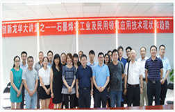 由龙华新区经济服务局主办,龙华新区产业技术创新促进会承办的创新龙华大讲堂在观澜银星科技大厦正式开讲,邀请到深圳市本征方程石墨烯技术股份有限公司董事长、深圳大学刘剑洪教授和深圳烯旺新材料科技股份有限公司副总经理陶振华,分别就石墨烯材料在工业及民生领域的应用技术现状和趋势进行了分享。
