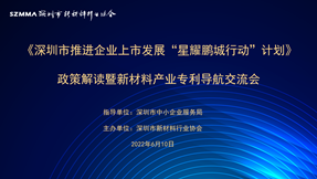 为贯彻实施《深圳市推进企业上市发展“星耀鹏城行动”计划》政策,加快培育新材料企业上市和提高上市公司质量,在深圳市中小企业服务局的指导和支持下,深圳市新材料行业协会联合深圳证券交易所于2022年6月10日下午14:30共同举办了深圳市推进企业上市发展“星耀鹏城行动”计划政策解读暨新材料产业专利导航交流会。